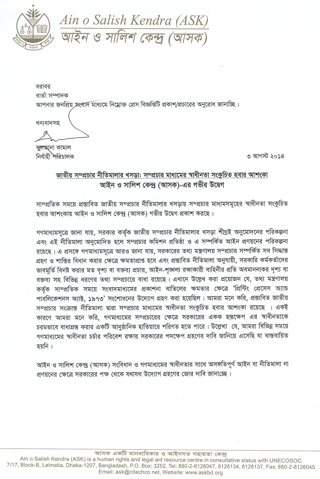 Press Statement from  ASK_ issued on 3 August 2014_1