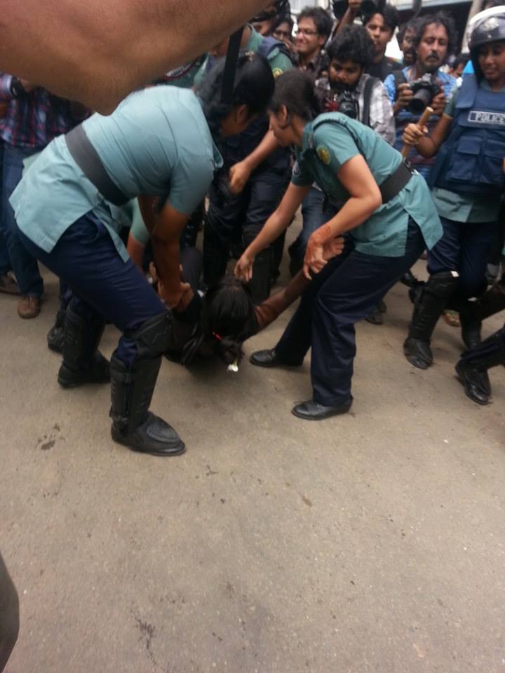 We strongly condemn this barbaric approach of trying to suppress the protesting workers and preventing their medical aid. Garment workers at Tuba Group were on hunger strike since 28 July 2014, demanding their arrears of wage for three months (May-July 2014), overtimes, and Eid allowances. On 6 August 2014, policemen confined workers inside the factory since morning and later made a barbaric assault on them around noon. They also assaulted the workers’ leaders and human rights activists who came to express solidarity with the workers on hunger strike. We believe that the way law enforcers have dealt with workers who were peacefully protesting in demand of their wage, was excessive and a matter of grave concern.