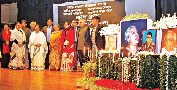 This memorial ceremony commenced by playing flute and a dance performance . Distinguished individuals of the society along with the family members of the four deceased bestowed their gratitude by lighting candles and read out excerpts from the biographies of four departed stalwarts who along with five other members started the organization in 1986.