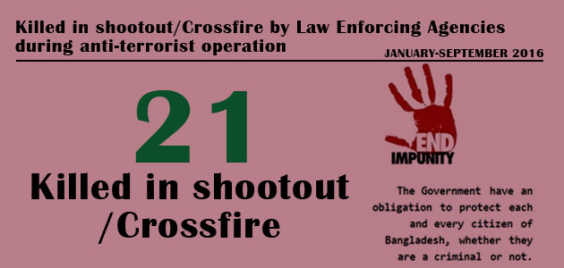 Killed in shootout/Crossfire by Law Enforcing Agencies during anti-terrorist operation : January-September 2016
