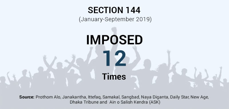 Imposed Section 144 (Divisionwise) January-September 2019