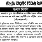 A female healthcare worker (21) has been quarantined in a makeshift hut beside a pond at Kotalipara, Gopalgonj. Human Rights Forum Bangladesh (HRFB) expresses serious condemnation against such an inhuman…