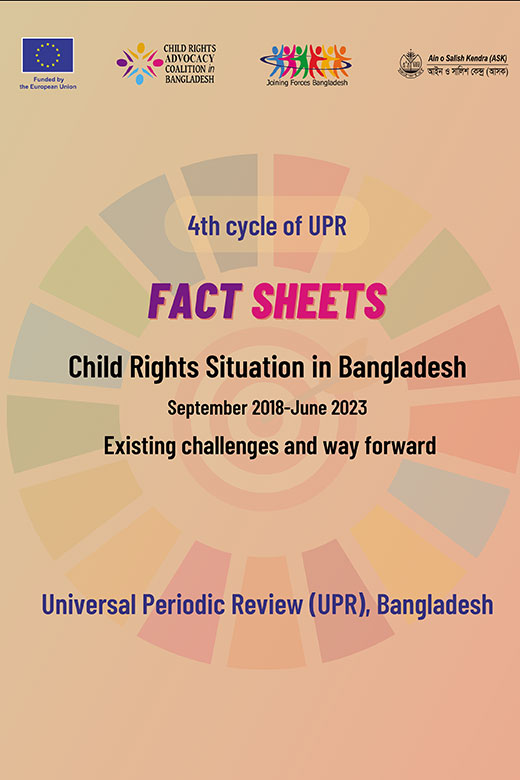 Child Rights Advocacy Coalition in Bangladesh (CRAC, B) is one of the most vibrant coalition in Bangladesh working for the promotion and protection of child rights since 2013. Ain o Salish Kendra (ASK) has been playing an active role as member since its inception and as the Secretariat since 2018. The Coalition is encompassed of most of the frontline child rights platforms in the country, with organisations and forums alike. For the first time in Bangladesh, the Coalition established a child rights monitoring system and executed a working follow-up advocacy in Bangladesh in line with UPR and UNCRC mechanism. ASK through CRAC, B aims to facilitate more stronger Civil Society platform and strengthen collective efforts to support the Government and other stakeholders in this process. Read More about the Project