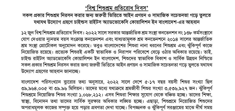 ত্রৈমাসিক শিশু অধিকার প্রতিবেদন (এপ্রিল-জুন ২০২৩)